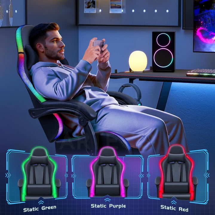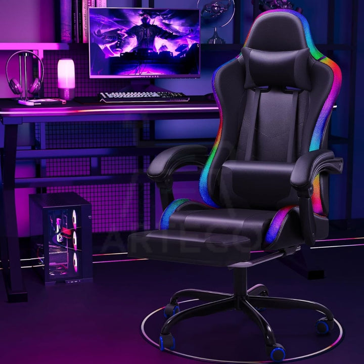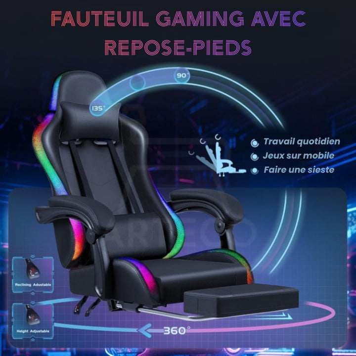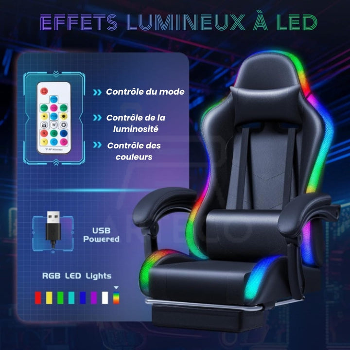 LORIX™ - Chaise Gaming Massage avec Lumière LED , Ergonomique avec Repose-Pieds