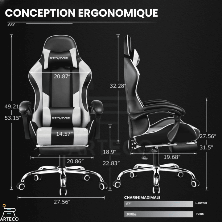 NITRON™ – Chaise Gaming & Bureau Ergonomique avec Repose-Pieds