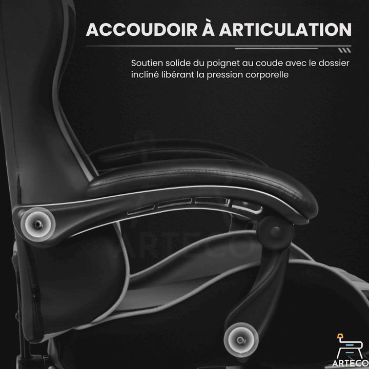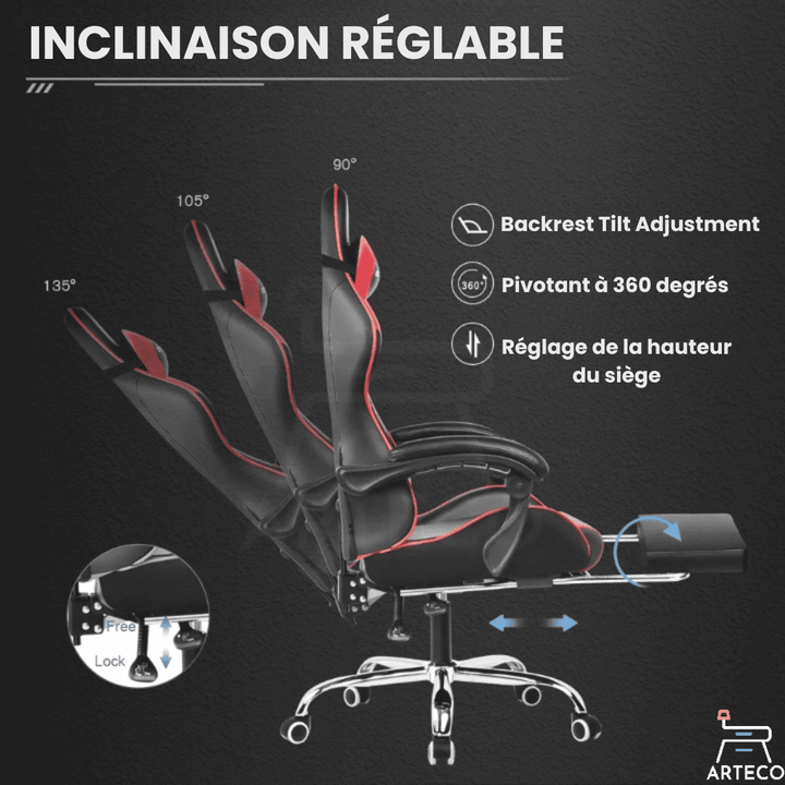 Avec son dossier inclinable et son repose-pieds escamotable, passez du mode travail au mode détente en un seul geste. Lisez, regardez un film ou jouez dans la position parfaite, à tout moment.