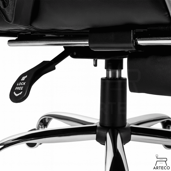 Sa base renforcée à 5 branches avec roulettes pivotantes à 360° offre une stabilité maximale et une rotation fluide, même sur sol dur. Le rembourrage en cuir PU de haute qualité assure durabilité et entretien facile.
