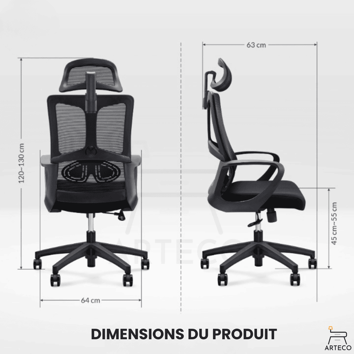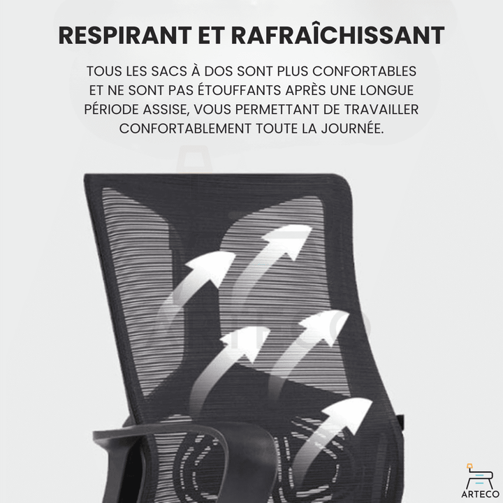 - Respirabilité tout au long de la journée : le dossier en maille vous garde au frais, contrairement aux chaises en simili cuir qui emprisonnent la chaleur.
