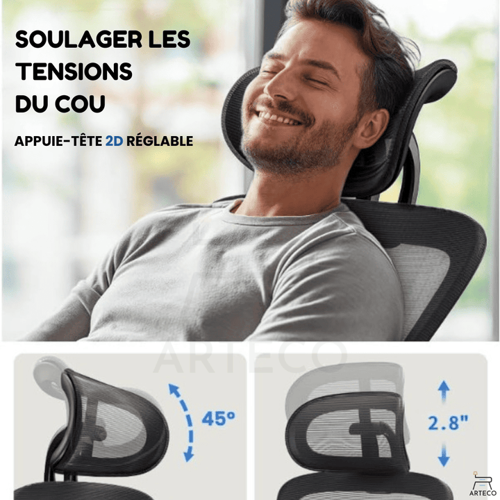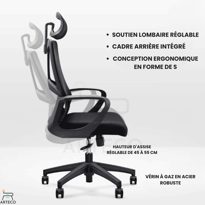- Confort adaptatif : soutien lombaire automatique qui s'adapte à vos mouvements, contrairement aux chaises fixes classiques.
